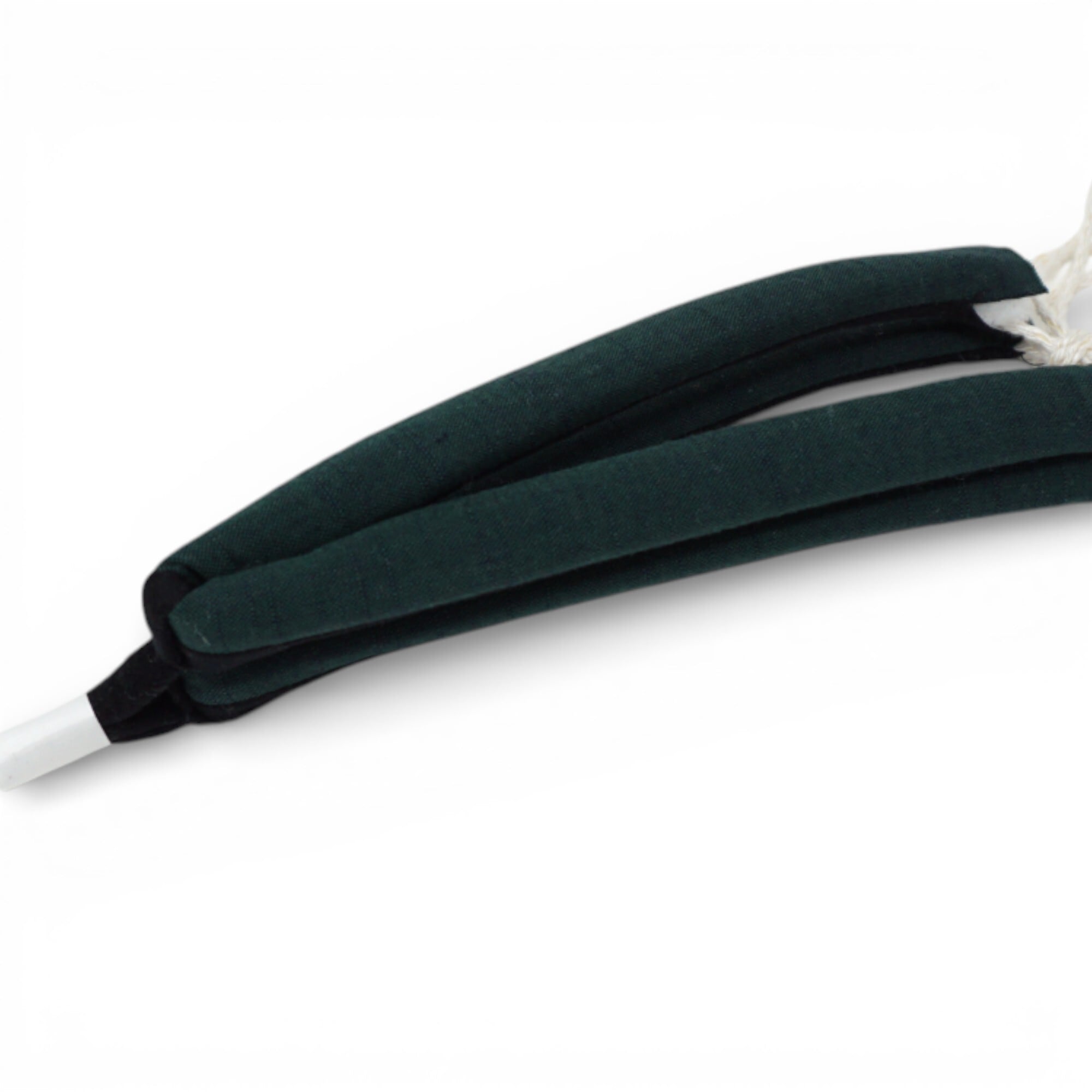 新潟県の十日町織物を使用し、シンプルな深緑に仕上げられたこの花緒は、繊細な織りが引き出す独特な風合いが特徴です。